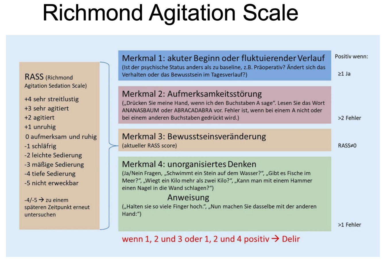 - Intubierte Patienten: Serielle A: Patient drückt jedesmal die Hand, wenn der Buchstabe A genannt wird -> A N A N A S B A U M