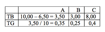 Beräkna TB och TG för de tre produkterna. Beräkna sedan beställningens TTB och TG.