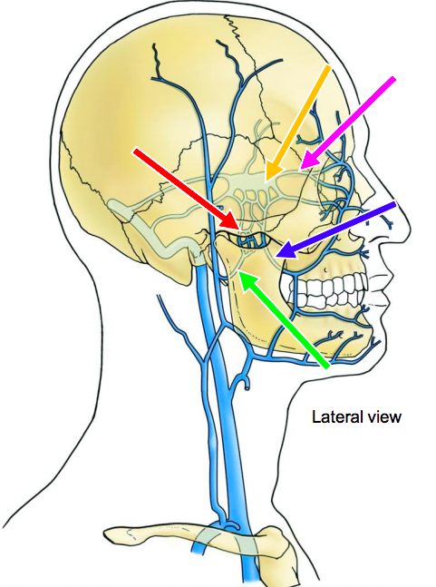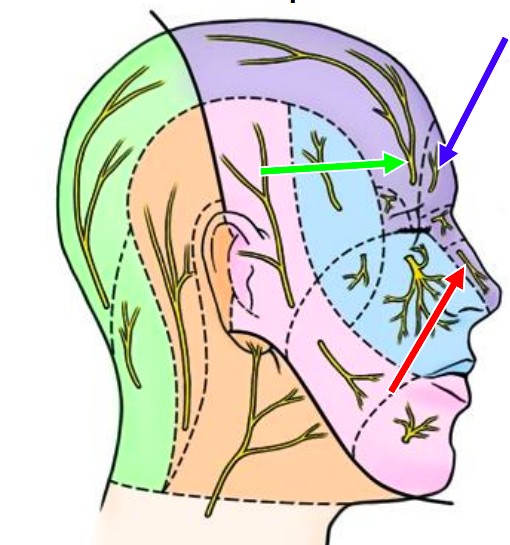 supraorbital, supratrochlear, external nasal