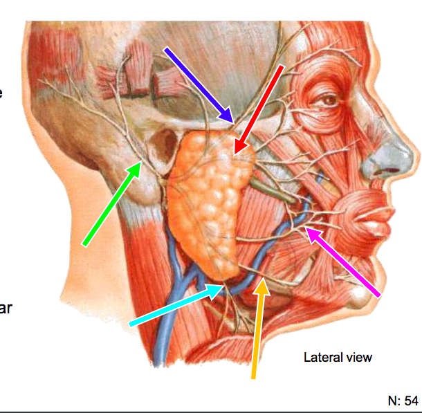 parotid plexus of the favial nerve (CN VII)