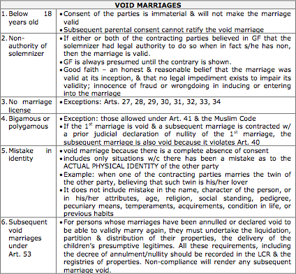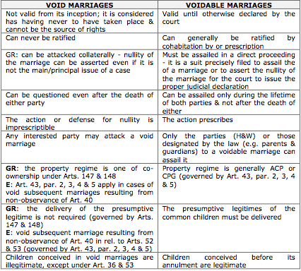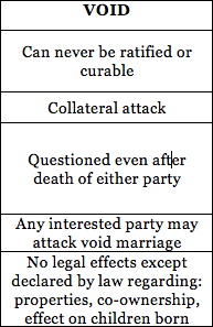 What are the differences between a VOID and VOIDABLE Marriage?