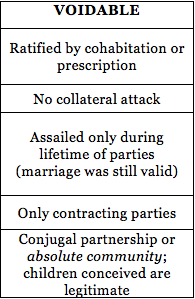 VOIDABLE MARRIAGE – marriage was valid from the start until it was terminated (annulled)