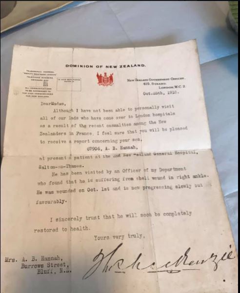 What wound did my grandfather Alexander Boyd Witten-Hannah receive in October 2018?