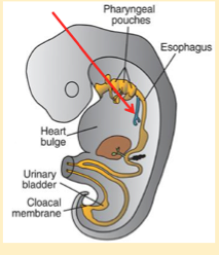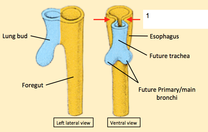 lung bud leading to the larynx, trachea, respiratory tree, and lungs