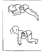7 months- Lordosis in quad with hips abducted, Trunk straight, may see slight lordosis