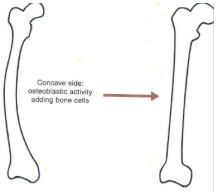Bone is reabsorbed from the convex side and laid down in the concave side