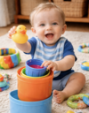 4 months: Hands to knees and other body parts, Can bring hands together but not yet transfer, Prone on Elbows- frees face side hand for reach,