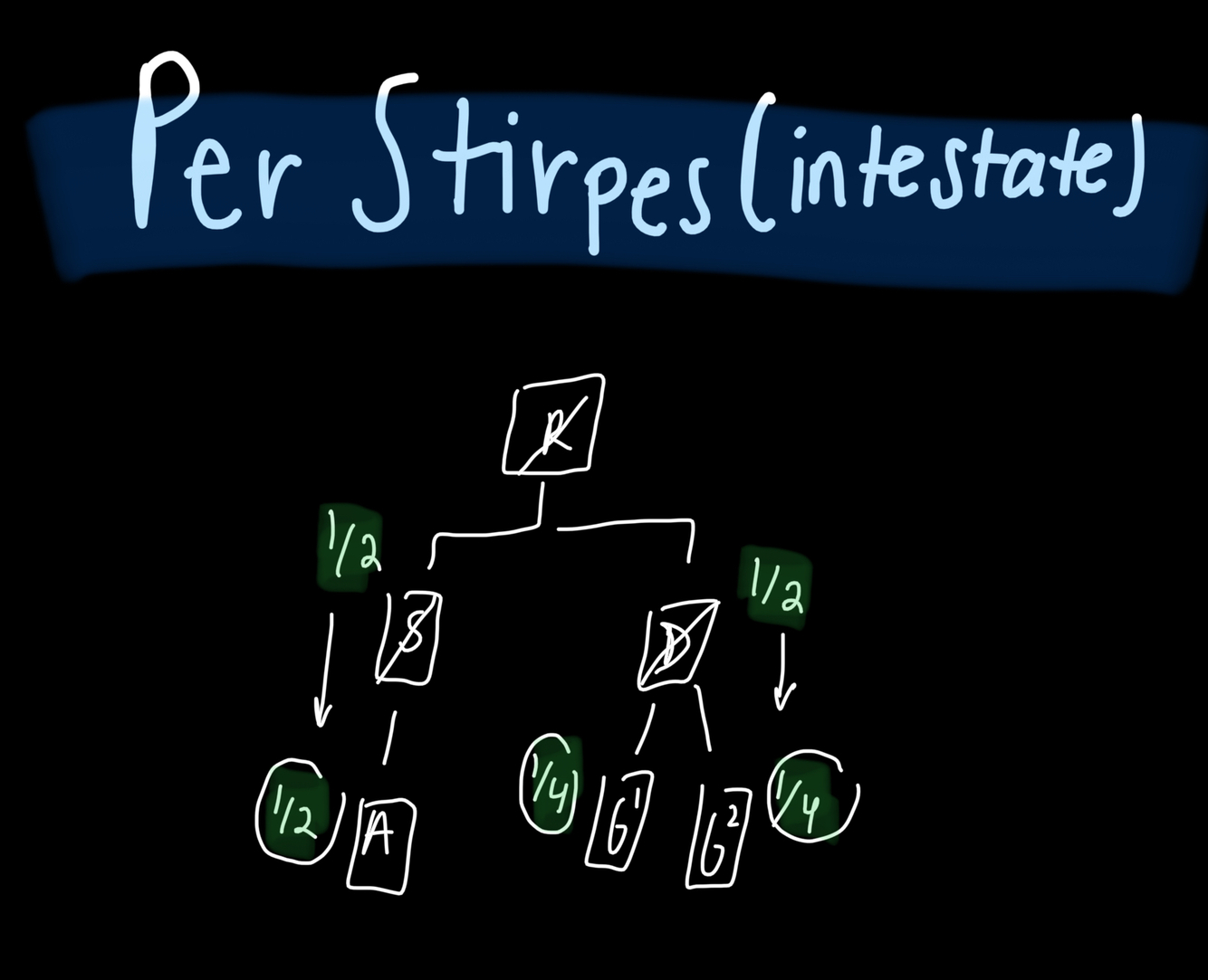 Step 1: Start by dividing the property into equal shares at the first generation where there is a surviving member.