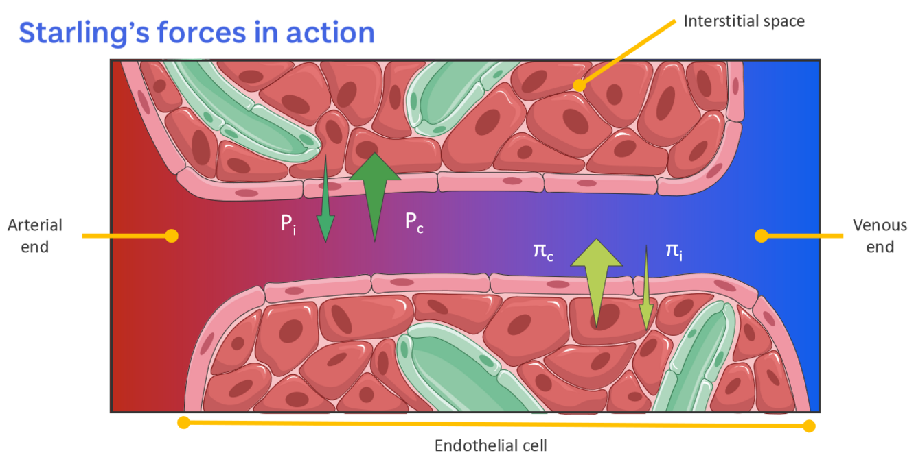 Changes in any one of Starling’s forces alter the direction and magnitude of fluid movement across the capillary wall