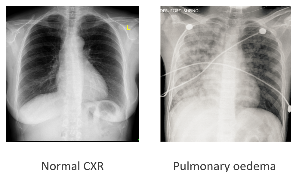Pulmonary oedema – fluid accumulation in the interstitial spaces of the lung. Can cause;