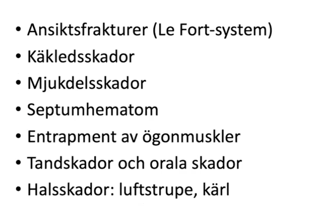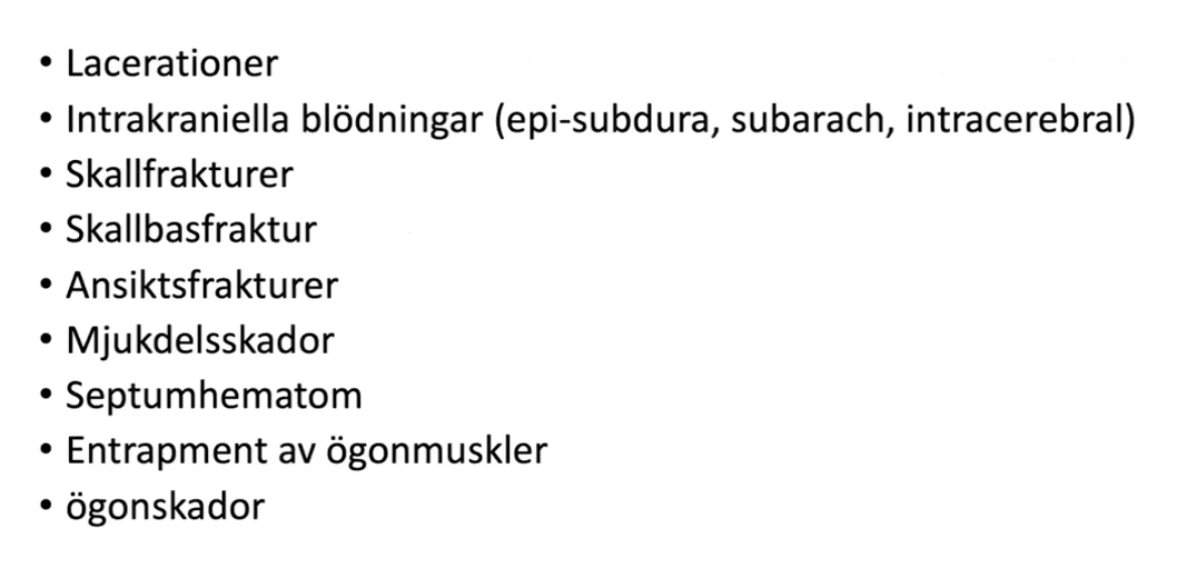vilka huvudskador ska man kunna?