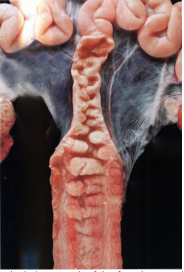 Which species is depicted in this anatomical photograph of the female reproductive tract?