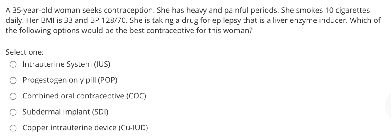 The correct answer is: Intrauterine System (IUS)