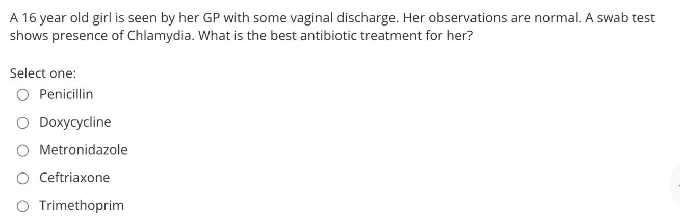 The correct answer is: Doxycycline