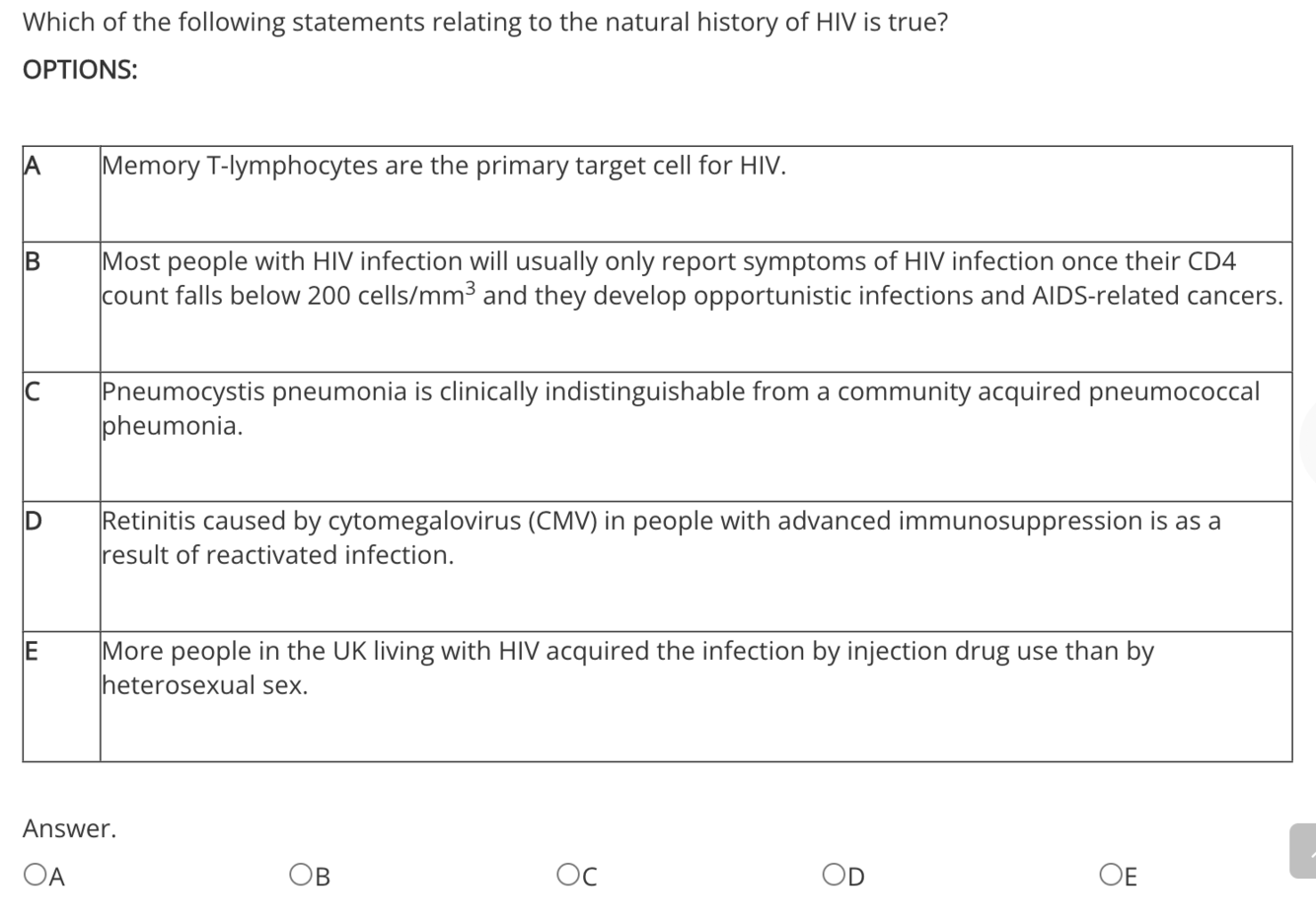 The correct answer is: A