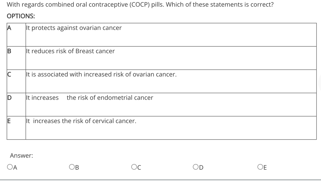 COCP Contraindicated in a women above 40 and with high BMI.