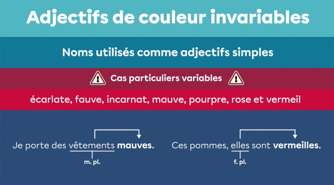 Rappel sur des couleurs invariables qui s’accordent dans certain cas