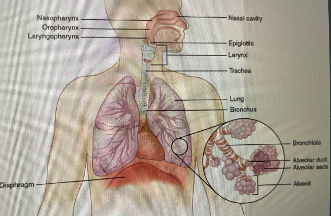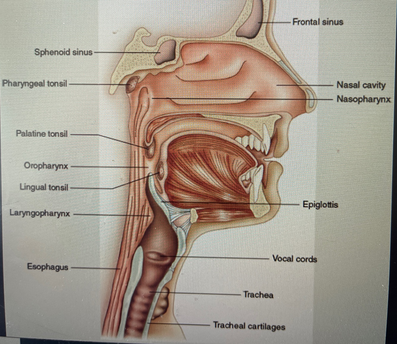 - nose, mouth, pharynx, epiglottis, larynx , trachea