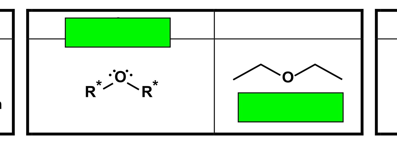 it has an oxygen with R groups on either side The R groups can be the same or be two different kinds of R groups R groups can be alkanes?!?!