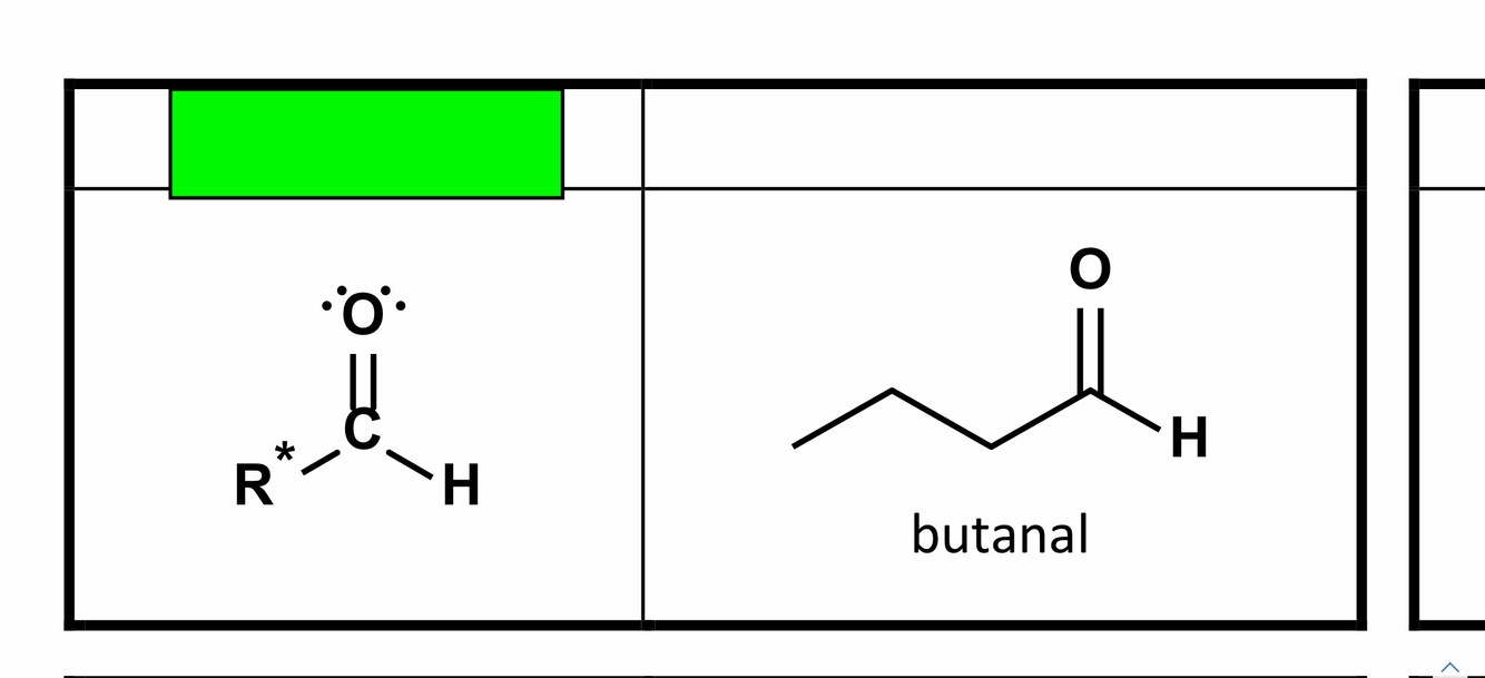 it has a carbonyl attached to an R group on one side and a Hydrogen on the other side