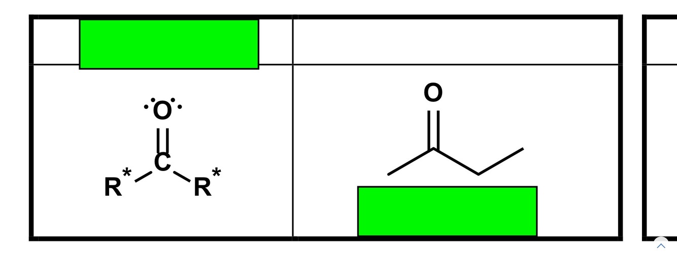 it has a carbonyl attached to an R group on one side and another R group on the other side R groups often Carbons