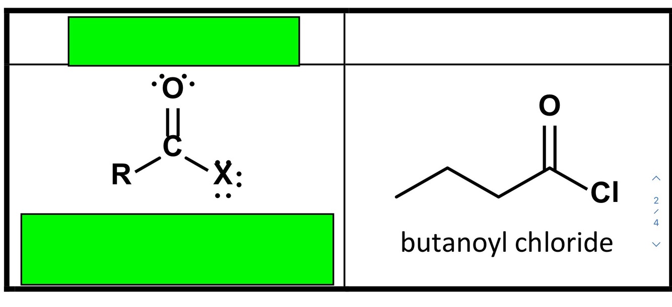 it has a carbonyl attached to an R group on one side and a halide on the other side