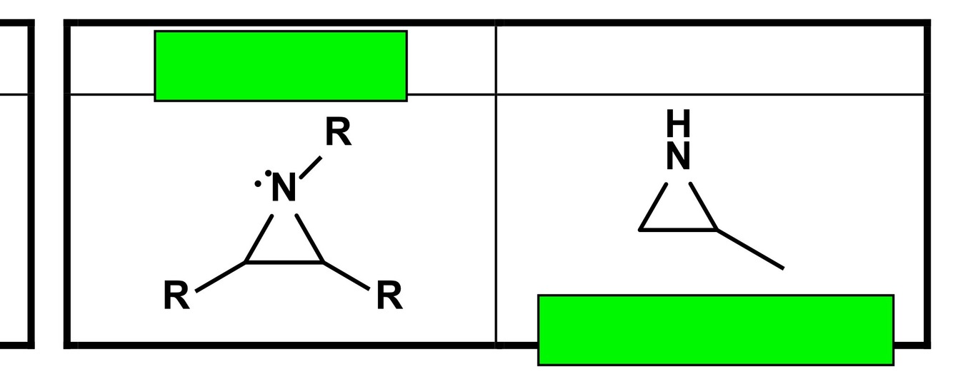 Its a 3 member ring where one of the members is nitrogen Like a triangle where one of the corners is for nitrogen and the nitrogen is also attached to an R group; the other 2 corners or the triangle are carbons and the carbons are attached to R groups
