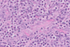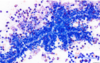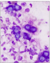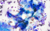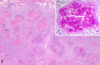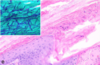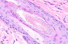 Capsule highlighted by mucicarmine (or Alcian blue)