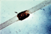 Endothrix (inside) or ectothrix (outside/degrade cuticle)