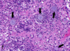 What are the typical histopathologic morphologic features of black-grain eumycotic mycetoma?