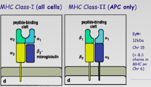 Both have peptide-binding cleft: but the fit between the amino acid side chains inthe peptide and the grove of MHC molecule determine binding