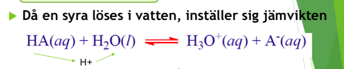 Då en syra löses i vatten, inställer sig jämvikten: