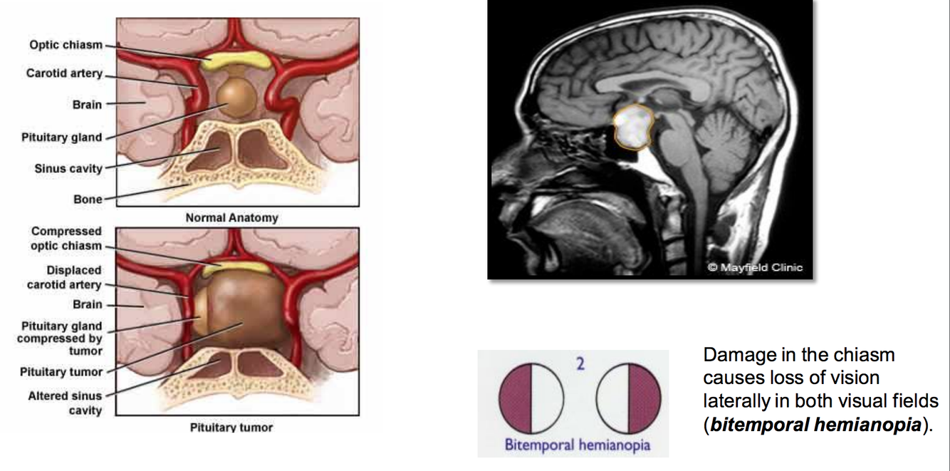 If you have a pituitary tumor this can cause bitemporal hemianopia (loss of vision laterally in both eyes).