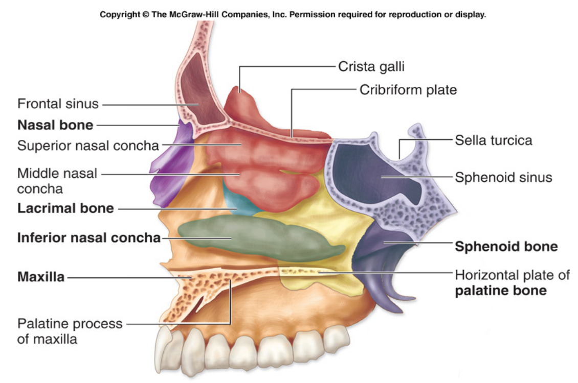 Maxilla, Ethmoid, Nasal, Lacrimal, Inferior Nasal Concha, Palatine, Sphenoid