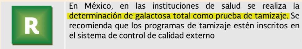 Tamizaje positivo coando niveles de galactosa son 10 mg/dl o mayores