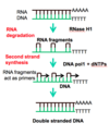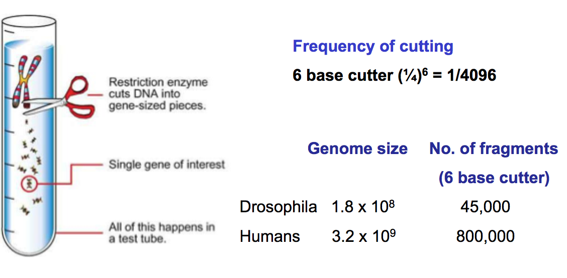 DNA is fragmented with restriction enzymes (endonucleases) e.g. EcoRI, HindIII etc. cut the gene into small pieces