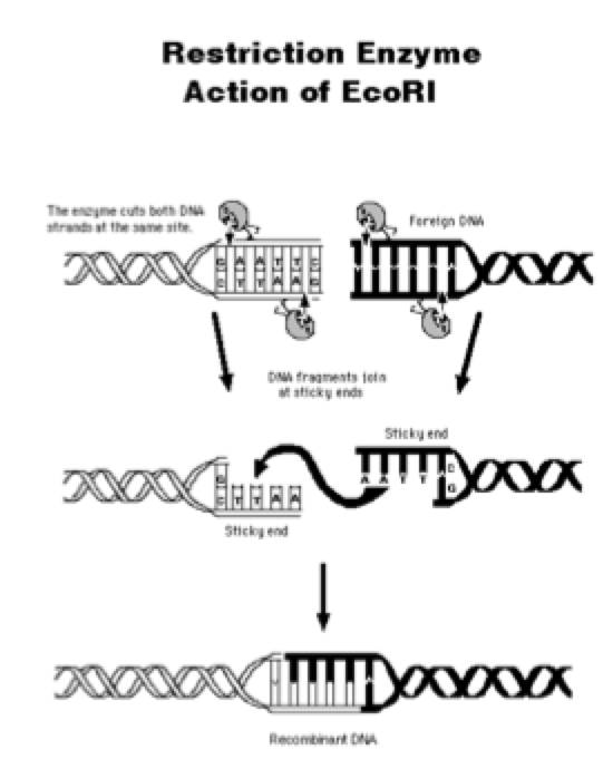 Using the same restriction enzyme to cut DNA –> sticky ends created –> allows DNA to join…