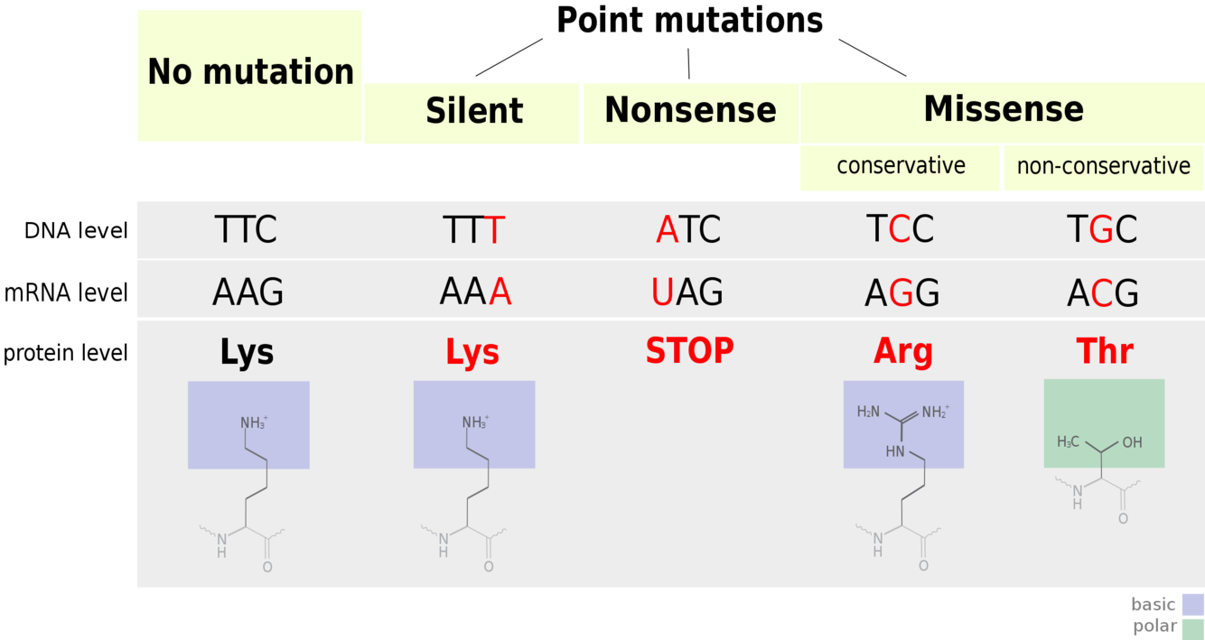 Alters the codon so that it changes from one aa to another (and thus causes different protein product) or may produce a stop codon where no protein product may be produced