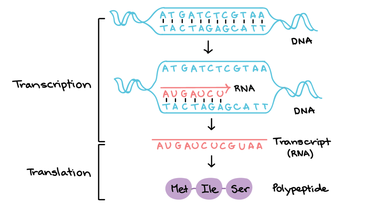 mRNA is translated into amino acids (3xpairs = 1 aa) which will form protein