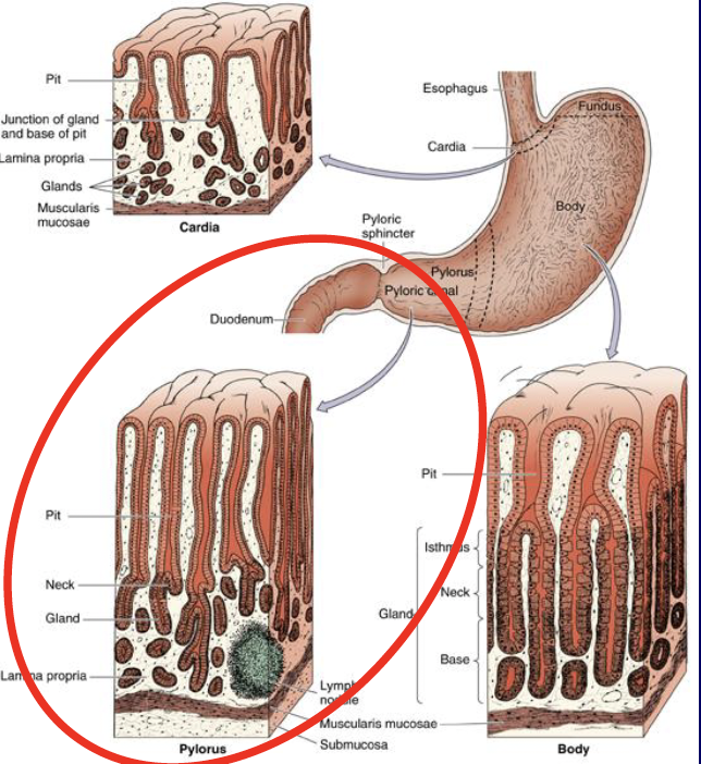 Enteroendocrine (and paracrine) cells in stomach S-> F