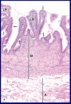 Mucosa (epithelium, lamina propria, muscularis propria)