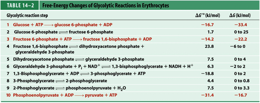 In the cell, most reactions of glycolysis have very small ∆G values, and are usually at equilibrium. These reactions are readily reversible depending on concentrations.