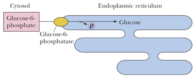 Occurs at the ER so glucose can be secreted from cell, unique to liver and kidney. Exergonic (-5.1 kJ/mol) because its a simple phosphorylsis