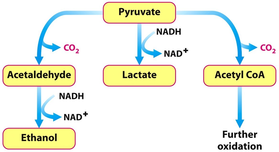Depending on the organism and oxygen availability, pyruvate generated from glucose has multiple potential fates.
