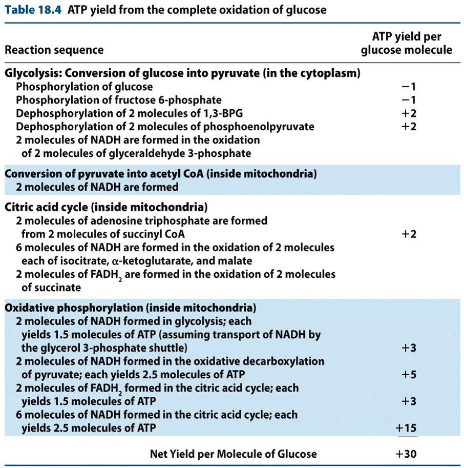 One molecule of glucose can yield approximately 30 ATP molecules