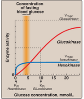 Enzyme kinetics of glucokinase and hexokinase
