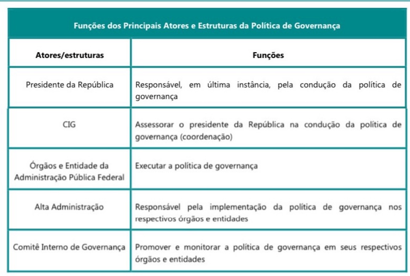 Apesar de o CIG ser o componente central na implementação da política de governança, há outros atores e estruturas desempenhando papéis relevantes nesse processo:
