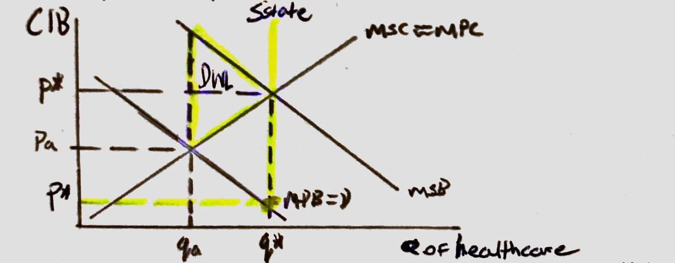 MPB = actual demand MSB = correct demand if private benefits were accounted for i.e. full information provided