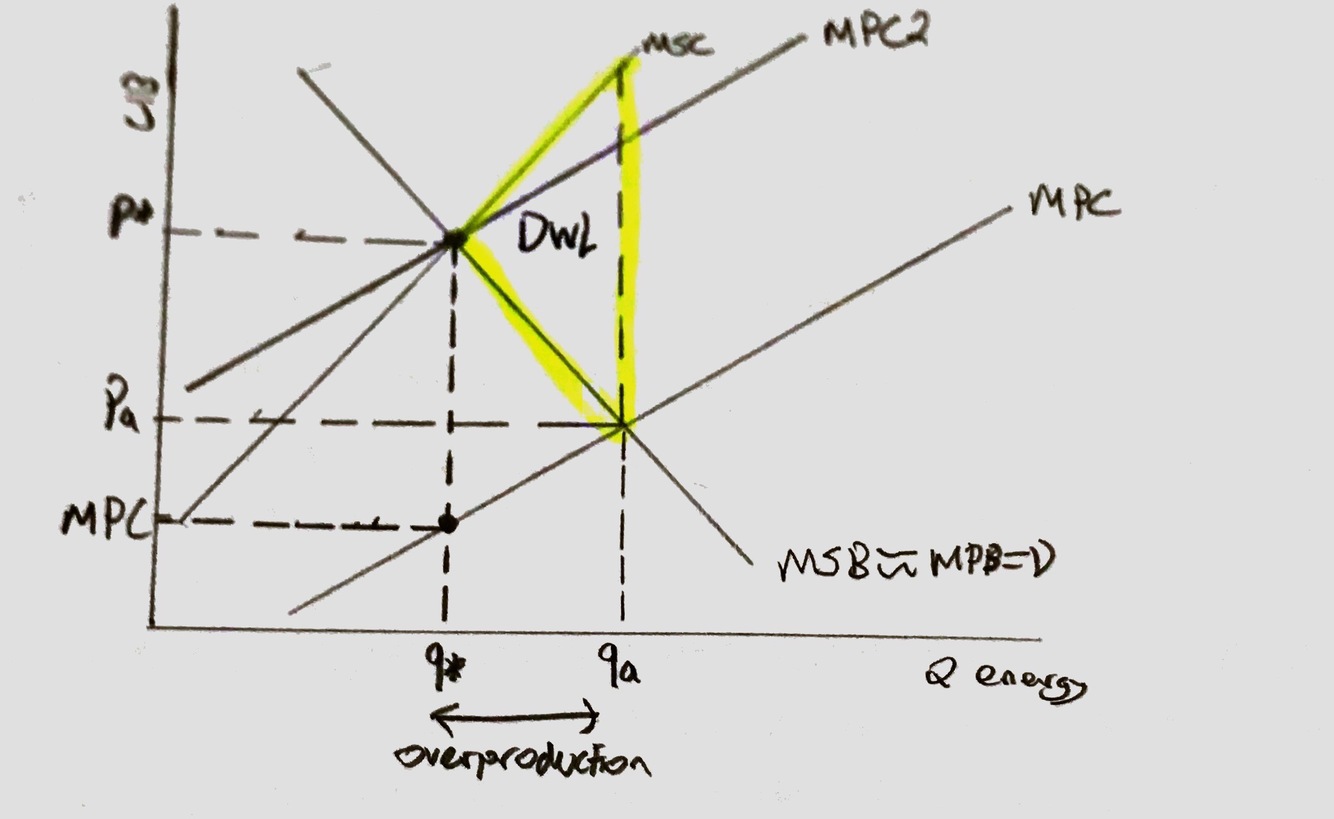 Size of tax —> tax too small, MPC curve will not rise by enough to reach social optimum