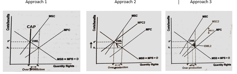 Approach 2 —> introduce regulations increasing cost —> reduce supply (shift)